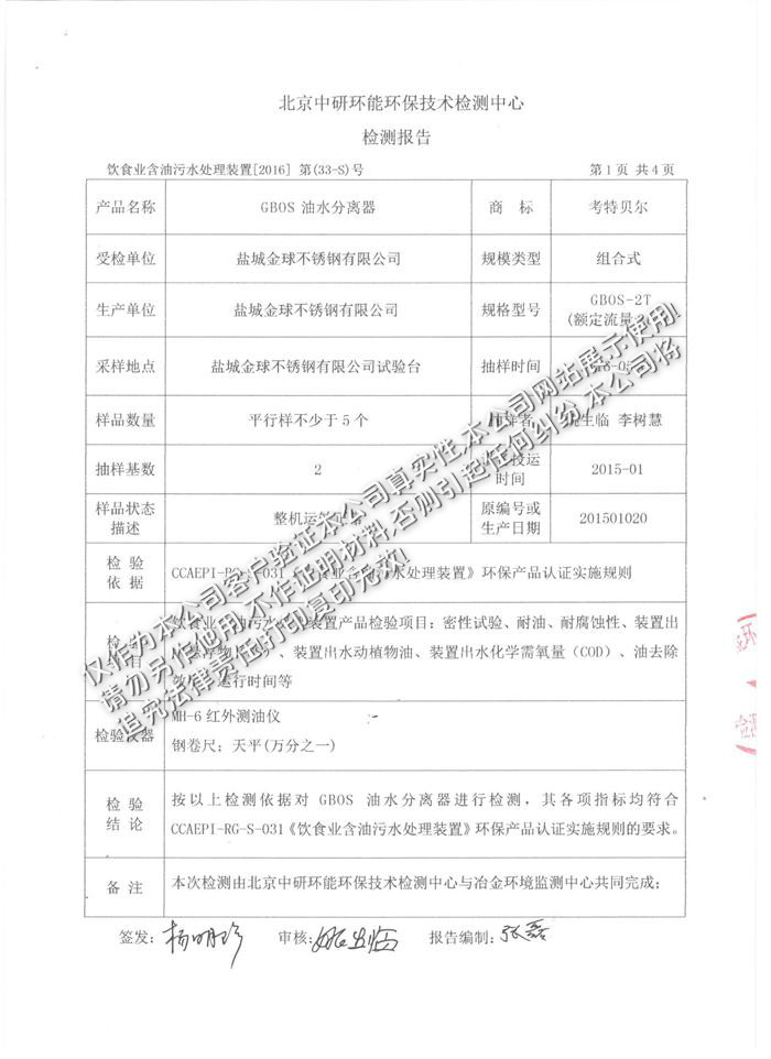 鹽城金球考特貝爾Q系列油水分離器發(fā)往浙江米果果